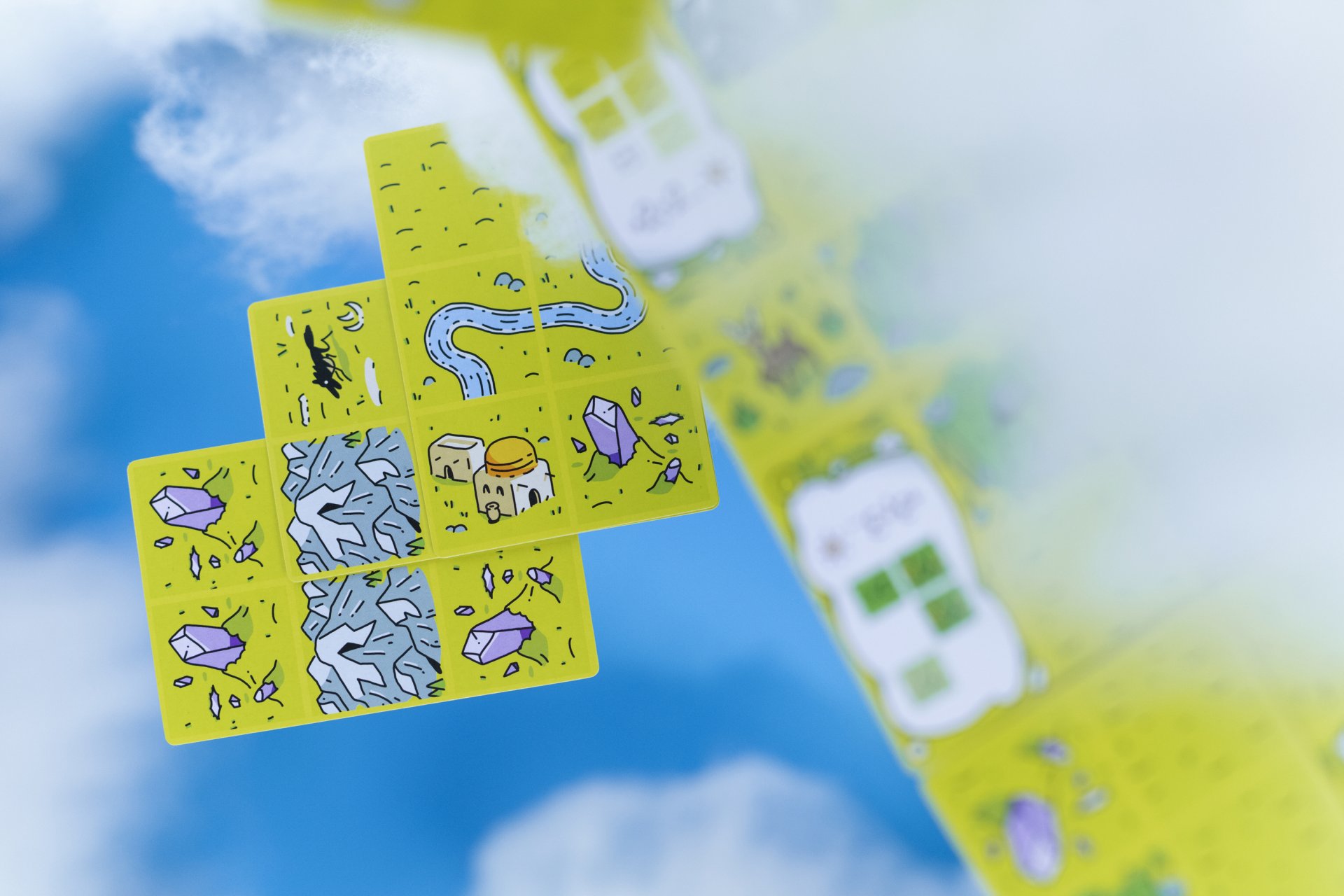 Ihr seid abwechselnd an der Reihe und legt Karten mit verschiedenen Symbolen und Zielen aus. Sobald ihr allein oder zu zweit jeweils 8 Karten gespielt haben, zählt ihr eure Punkte – basierend auf der gemeinsamen Zielbedingung sowie den individuellen Zielen, die in ihren fertigen Landschaften enthalten sind. Wer die meisten Punkte gesammelt hat, gewinnt!