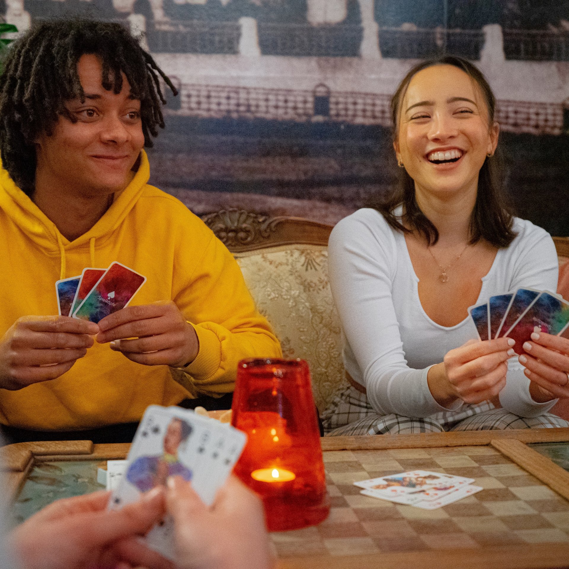 Neben dem König gibt es auf der K-Karte immer auch eine Königin, Menschen mit verschiedenen Hautfarben werden abgebildet und für Stereotype ist kein Platz. Die Zahlenkarten bleiben genauso wie bei dem handelsüblichen Deck. Mit dem Deck könnt ihr ganz normal Doppelkopf spielen.
