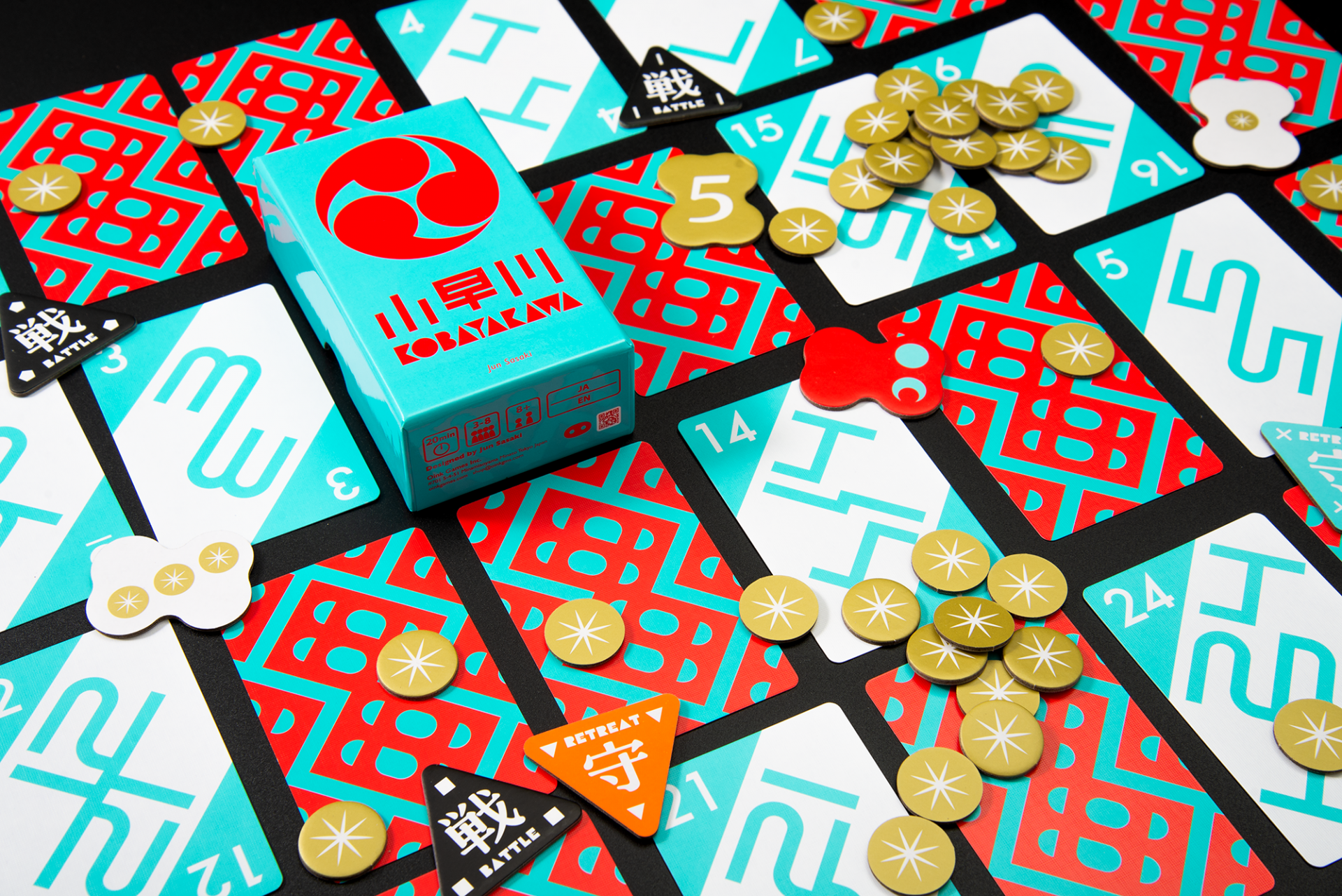 Place your bets. If your hand is the highest, you win! However, watch out for the tricky "Kobayakawa" card. The number on the Kobayakawa is added to the lowest card's value, so even if you're holding the highest number, a win is not guaranteed. Despite its simple rules, this is a quick and exciting card game that will test your bravery and bluffing.