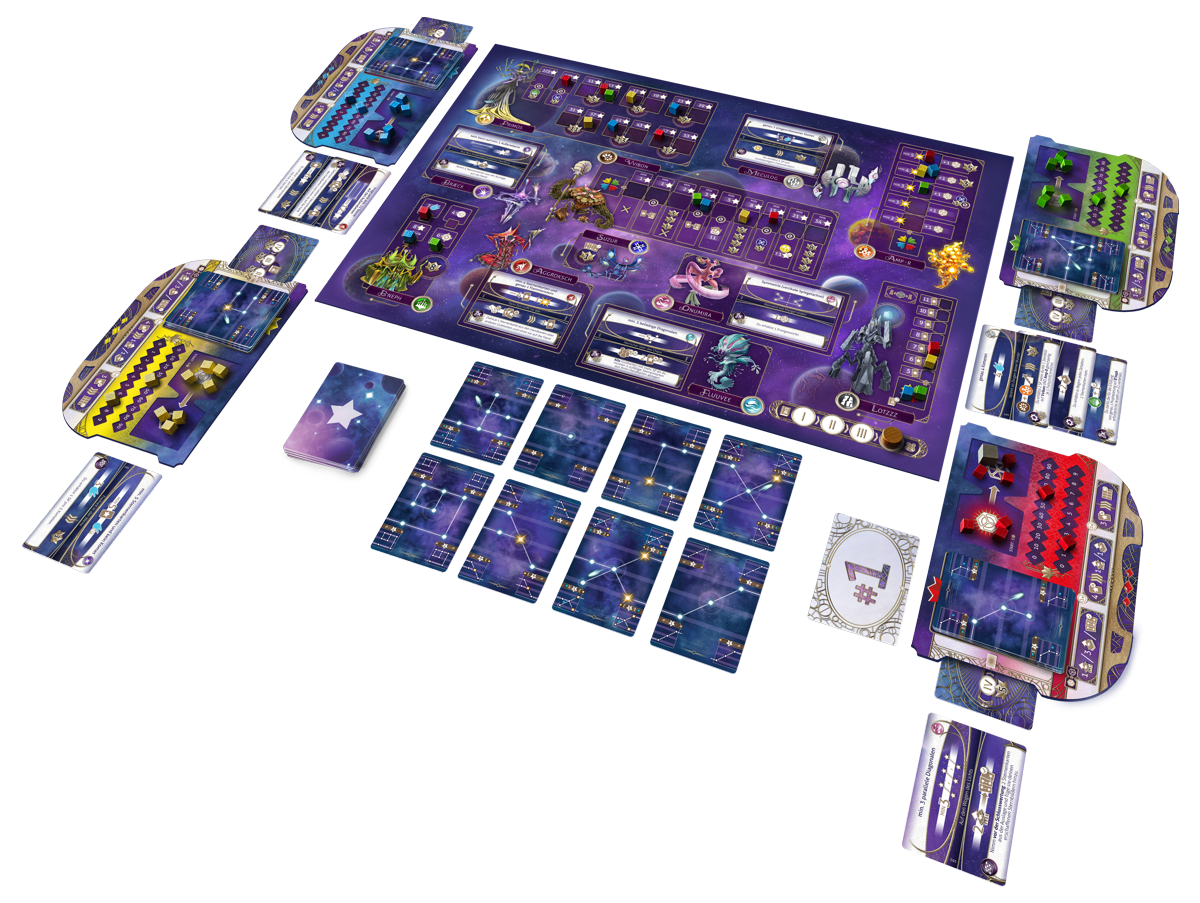 Die Spieler wetteifern darum, die mächtigste Gottheit in der Galaxie Ilumeïa zu werden. Dazu fügen sie Sternenkarten zu Sternbildern zusammen, die verschiedene Bedingungen erfüllen müssen und dadurch Siegpunkte generieren. Für effektive Aktionen ist gutes Energiemanagement erforderlich. Durch geschicktes Einsetzen von Energiewürfeln können Effekte und Boni erlangt werden. Das Spiel beinhaltet außerdem einen Solomodus.