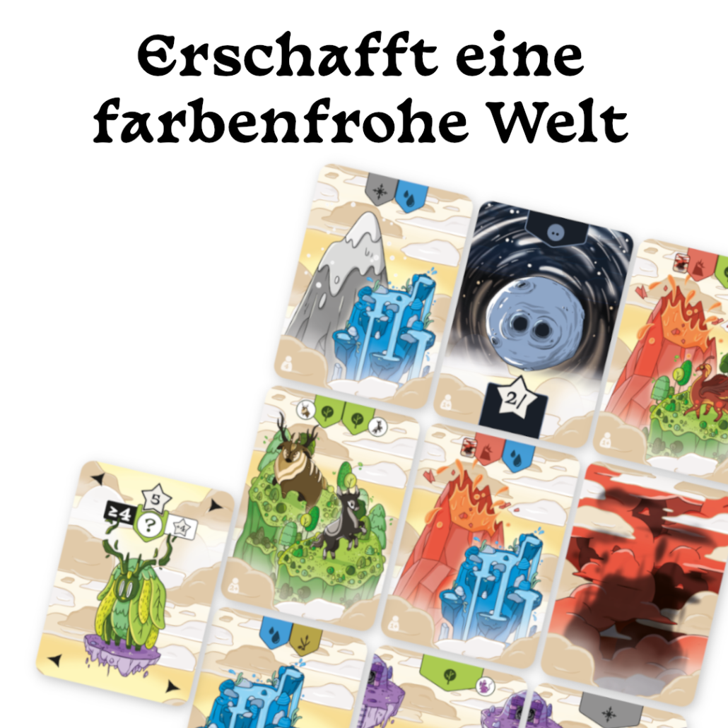 Strange World above the Clouds ist ein kurzweiliges Legespiel für 1 bis 4 Personen ab 10 Jahren. In jeder Runde draftet ihr 3 Karten und legt sie in euer persönliches 4×4-Raster. Am Ende der Partie haben ihr jeweils 16 Karten platziert und wer die cleversten Kombinationen geschaffen hat, sammelt die meisten Punkte und gewinnt! Das perfekte Spiel für Fans von knobeligen Legespielen – egal ob solo oder multiplayer.